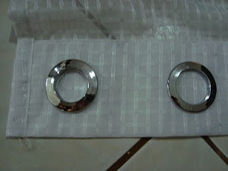ilhoses macho e fêmea. O tamanho do ilhós vai depender da grossura do varão a ser usado. Nesta cortina foi usado grande .